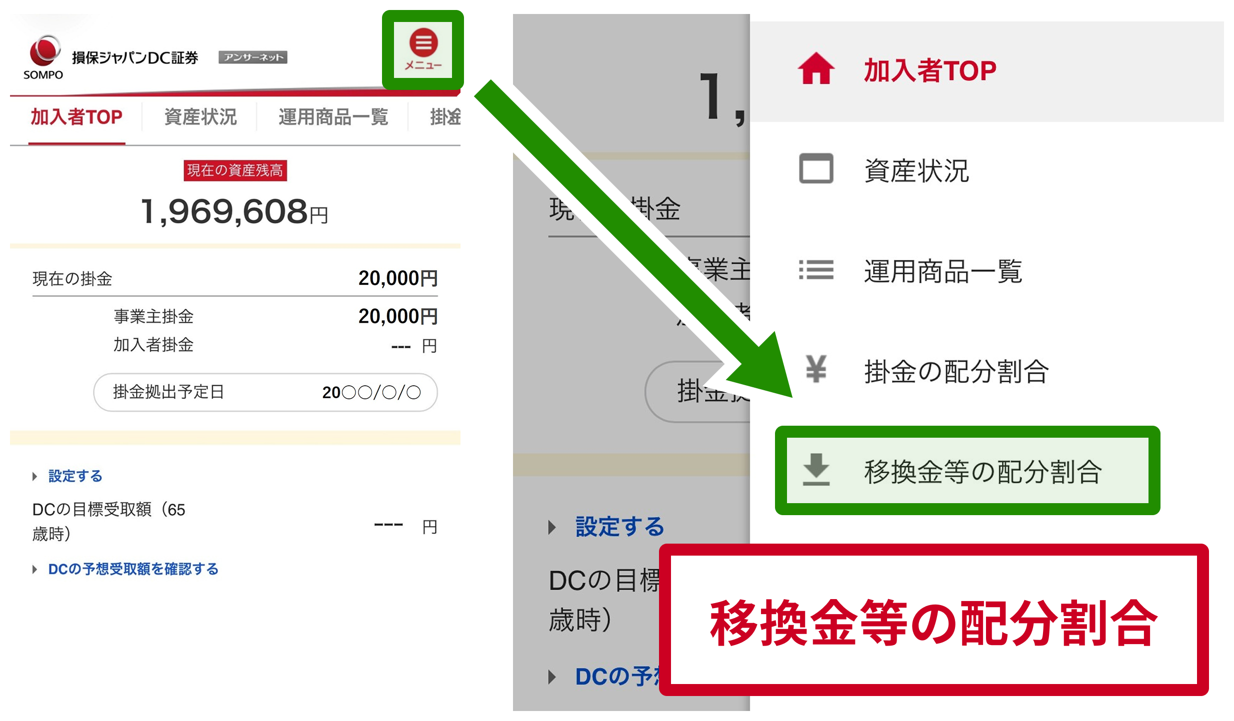 「掛金の配分割合指定」とは別に、「移換金等の配分割合指定」を行うことができます。